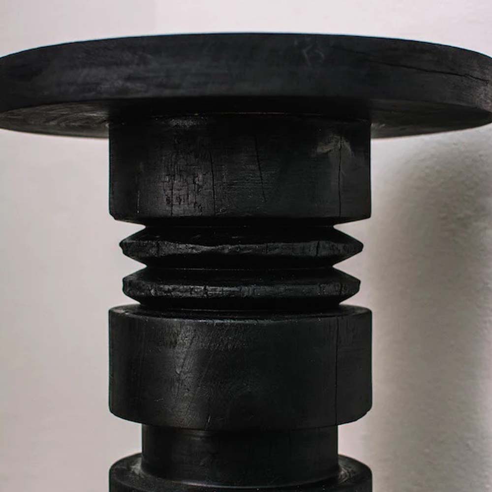 Conçu par des artisans mexicains de Daniel Orozco Estudio, ce tabouret totem en bois massif brûlé est une célébration de la matérialité et des rituels autour des totems.