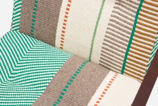 This special edition Capo Lounge Armchair is upholstered in a Manta Alentejana, a traditional blanket from the Alentejo region of Portugal with a heritage reaching back over a century. The Espinhada pattern and Verde colourway were designed at the Fabricaal workshop in Reguengos de Monsaraz. The alignment of the pattern across the chair was carefully chosen to achieve the most aesthetically pleasing composition.