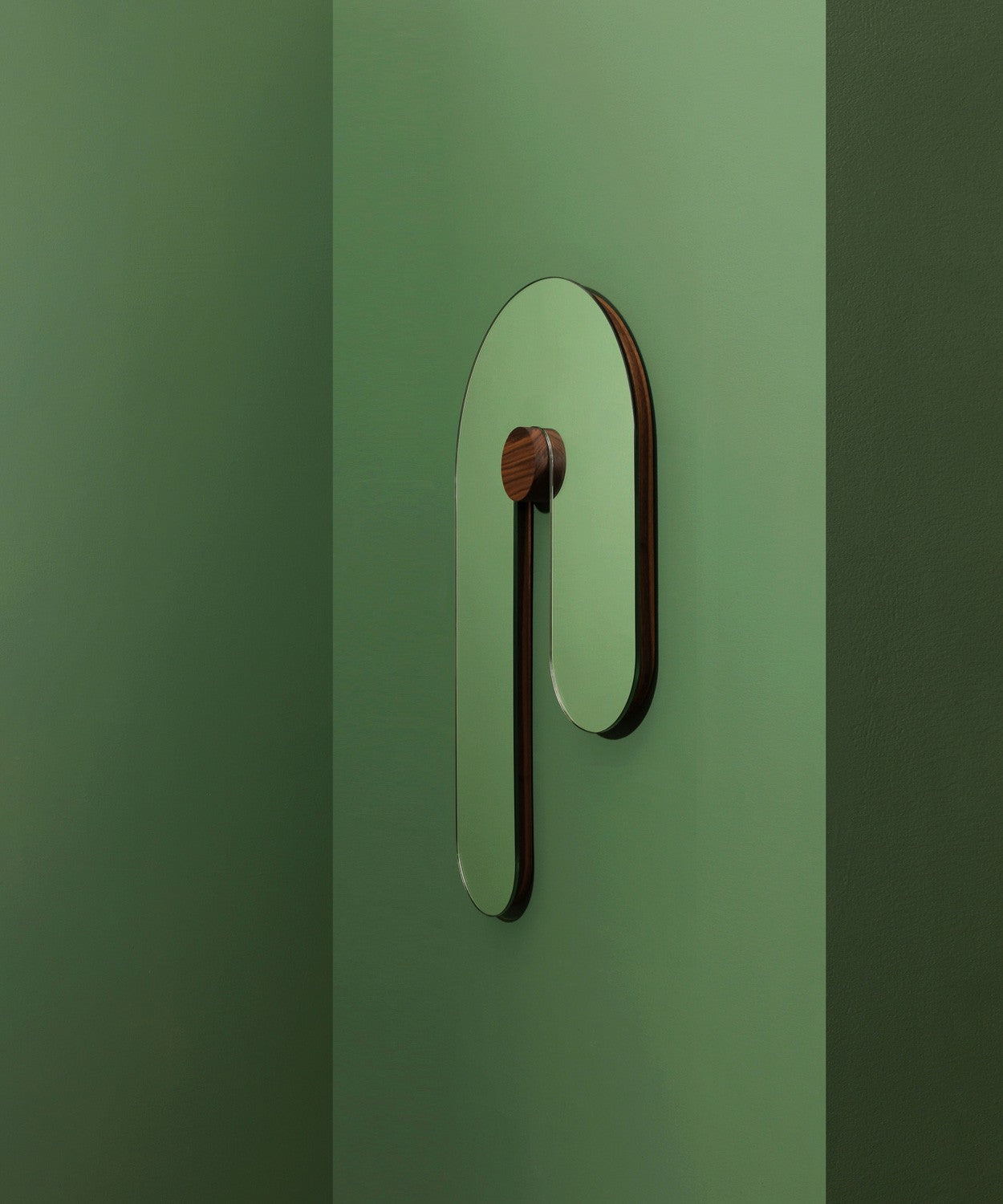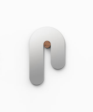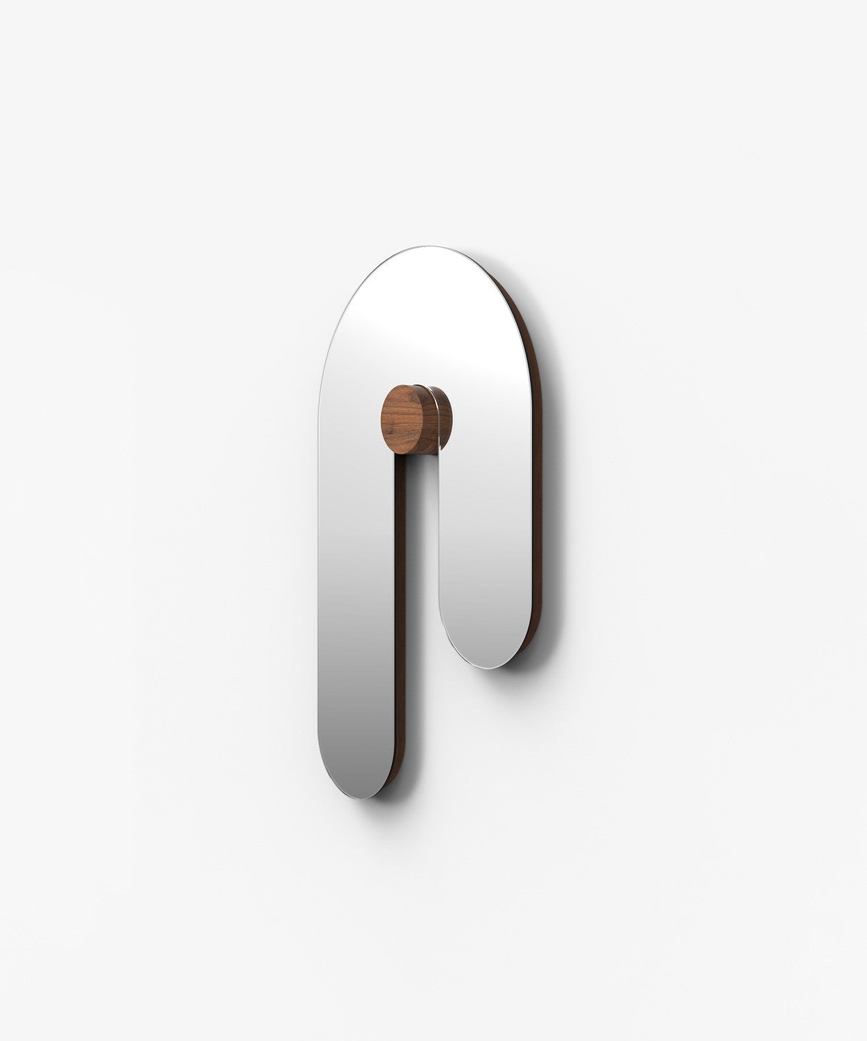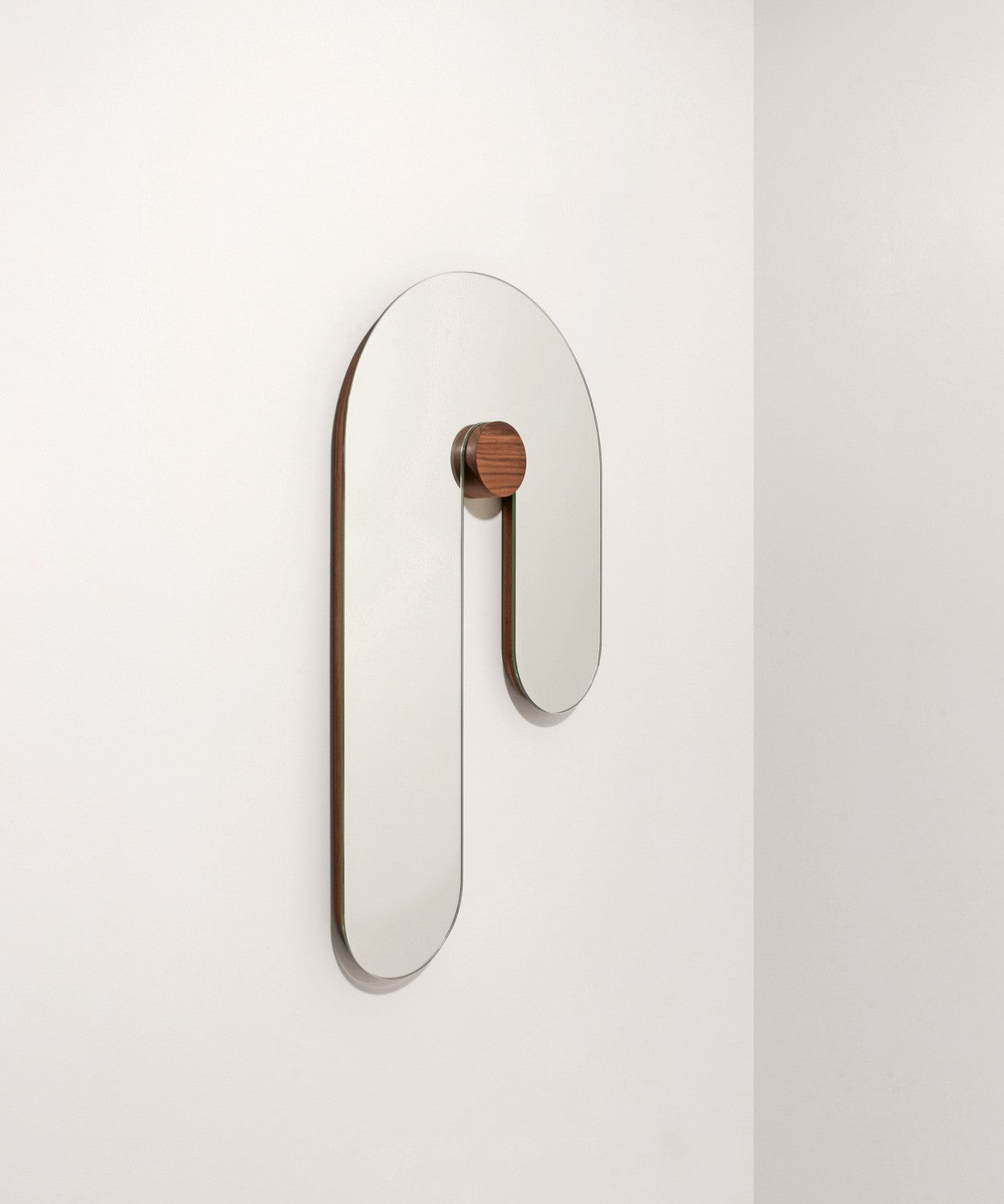 Materials: Clear mirror, edge banded walnut, walnut dowel