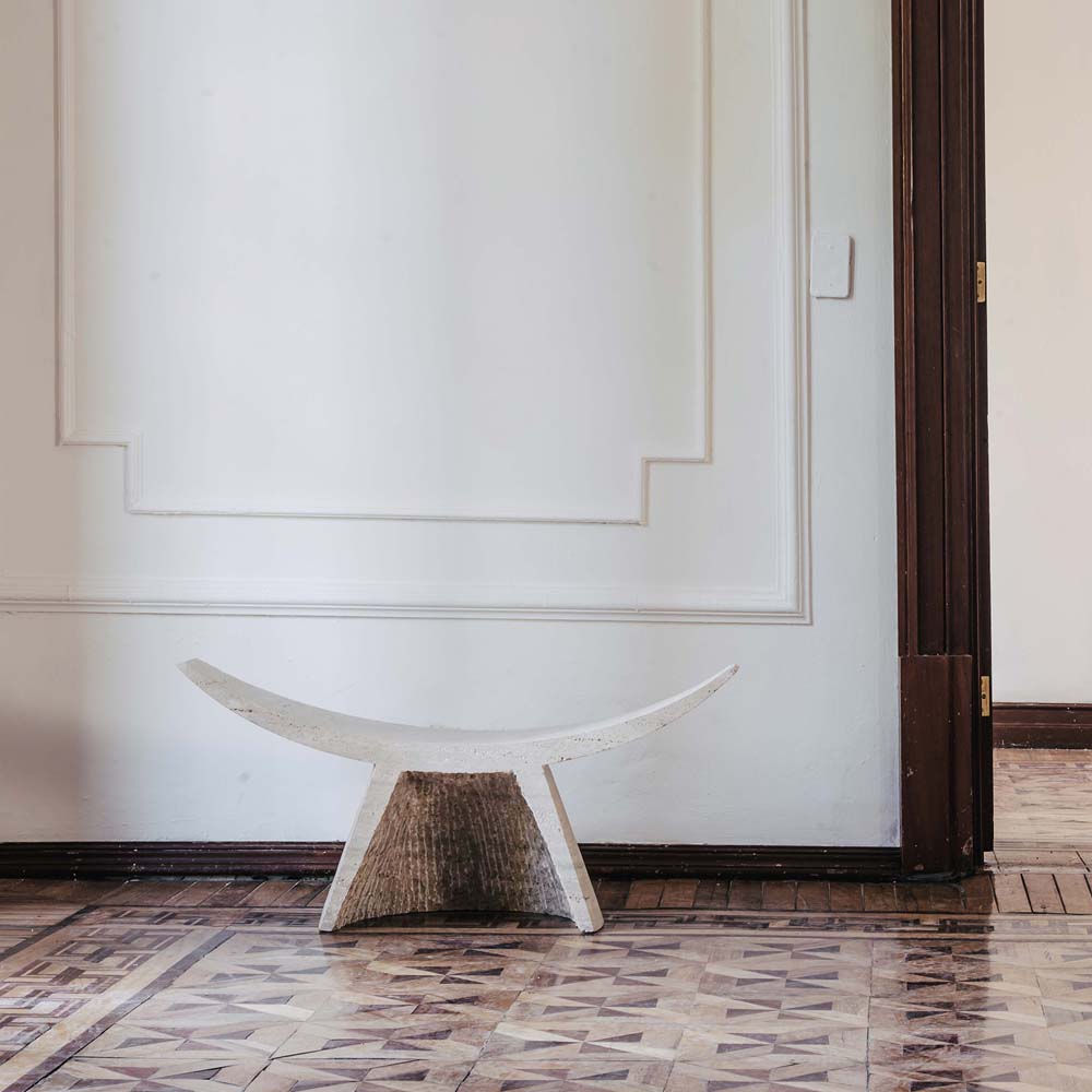 Les tabourets sont sculpturaux, respirant un minimalisme qui remue doucement l'âme.