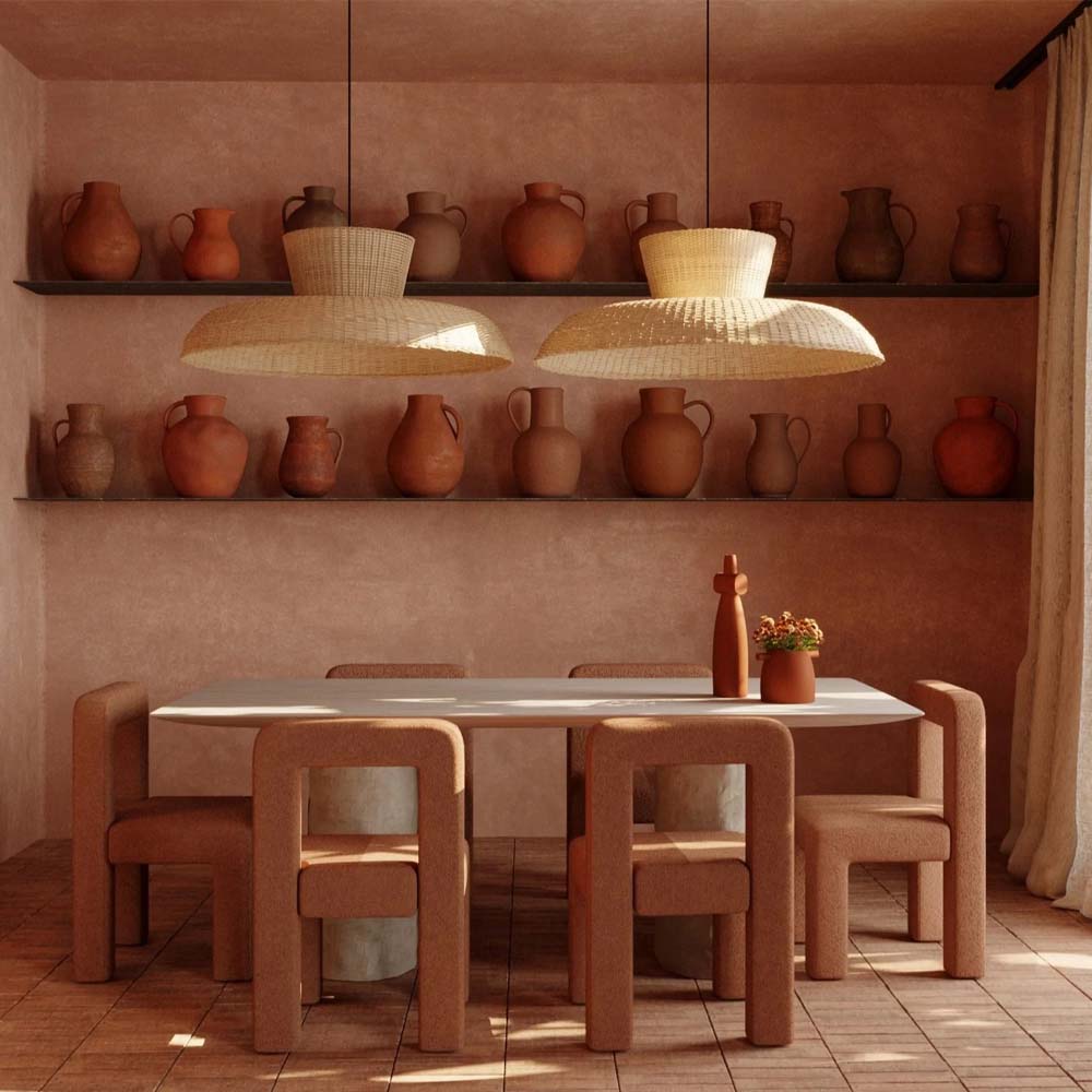 Tissées à la main par des artisans ukrainiens à partir de vigne de saule, la forme infinie et méditative de STRIKHA, les lampes incarnent l'unité et les cercles familiaux très unis.
