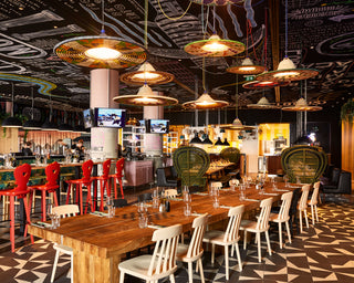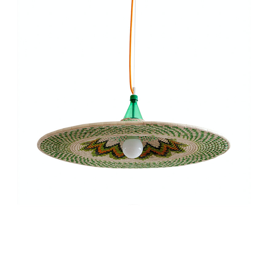 A collaboration between Madrid-based designer Álvaro Catalán de Ocón and a group of artisans in the Colombian Amazon and beyond, the PET Lamp collection is a vibrant, soulful project that transforms trash into treasure. Each PET Lamp is one of a kind. The shades are created by hand from discarded plastic bottles that are cut into strips and interwoven with dyed and undyed palm tree fibers by artisans in South America.