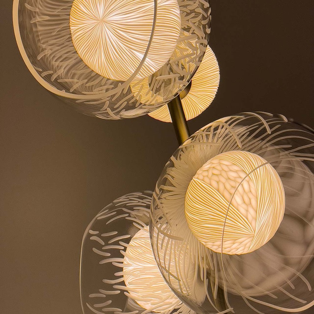 Vezzini & Chen's work is an intimate dialogue where molded clay and blown glass intertwine, giving rise to creations bordering the functional and the sculptural. Their meeting at the Royal College of Art sealed an alliance of origins and passions, uniting Vezzini's ceramic hand with Chen's crystalline fluidity to create works of vibrant and interactive forms.