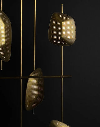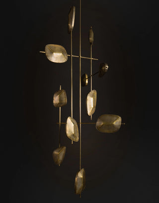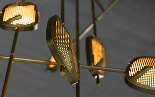 Candelera is a collection focused on creating large format sculptural lighting pieces from a functional approach. To accomplish the balance of the composition, multiple parameters such as volume, mass, and density, as well as the distance between the elements, are calculated and projected simultaneously from the shaping of every piece of the system. Simple geometrical gestures in the manufacturing process, translate 2D surfaces to complex double curved surfaces put together to shelter hidden light sources.