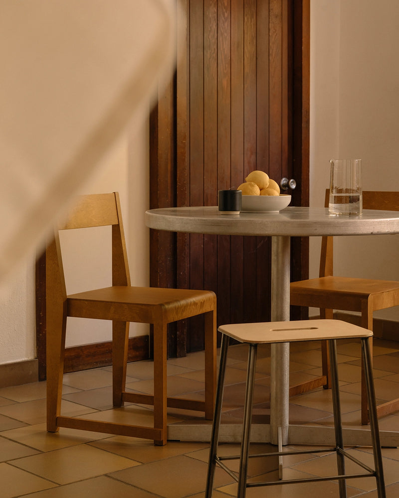 Chair 01 reveals a refined silhouette, inspired by the seating seen since the 19th century in Nordic auditoriums and churches, where silence and contemplation are combined. Its archetypal form, heir to the evolving simplicity of Danish design, gives it unwavering robustness while retaining a discreet grace. Stackable and easily modular, it elegantly adapts to the needs of everyday life. Crafted from Baltic birch and available in several finishes, it adapts delicately to a wide range of environments, inviting both contemplation and conviviality.