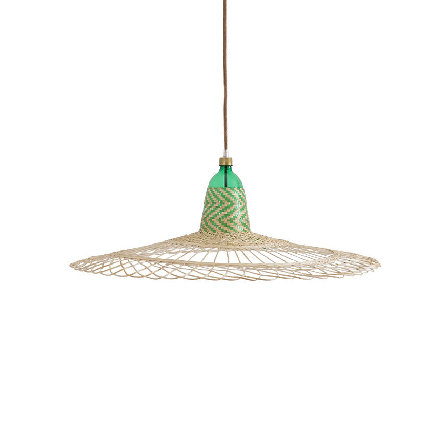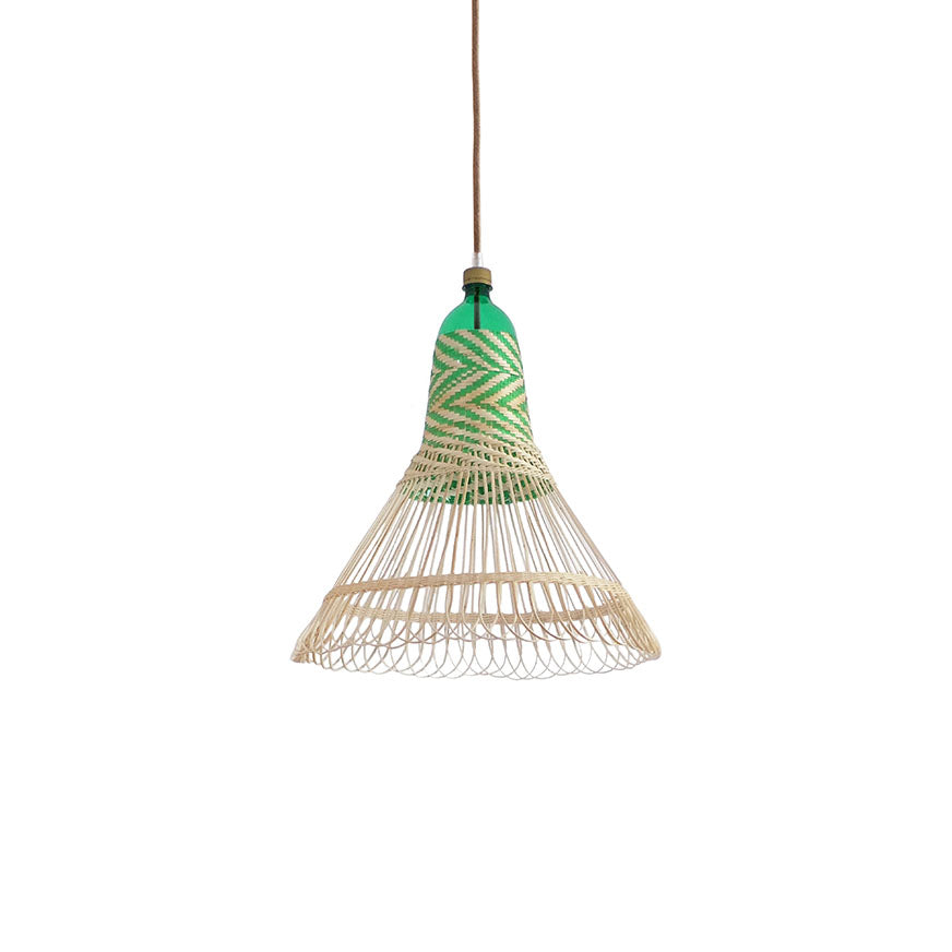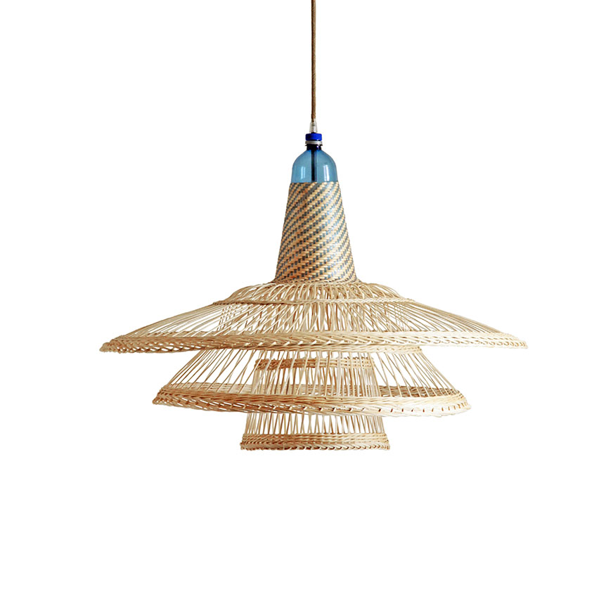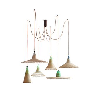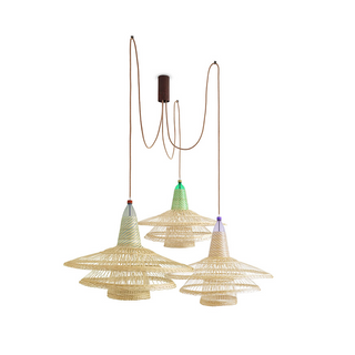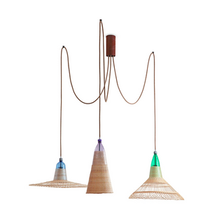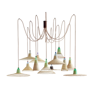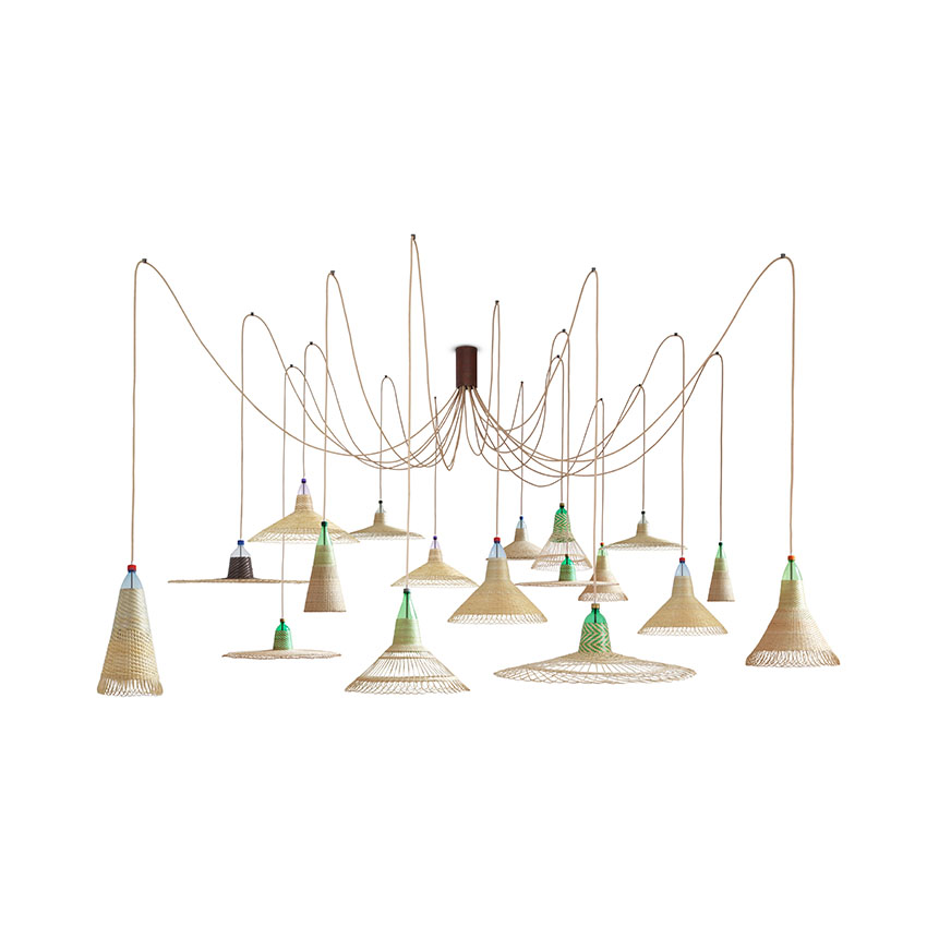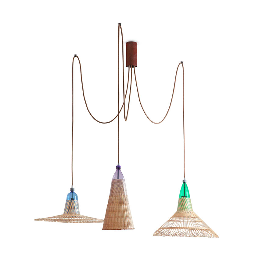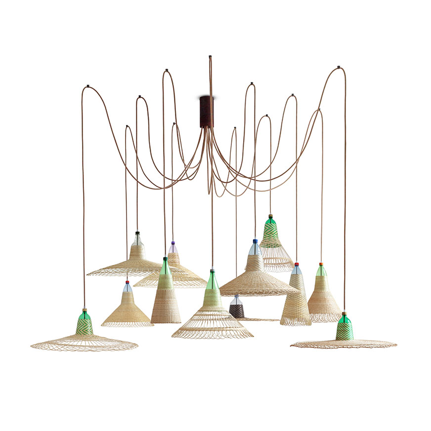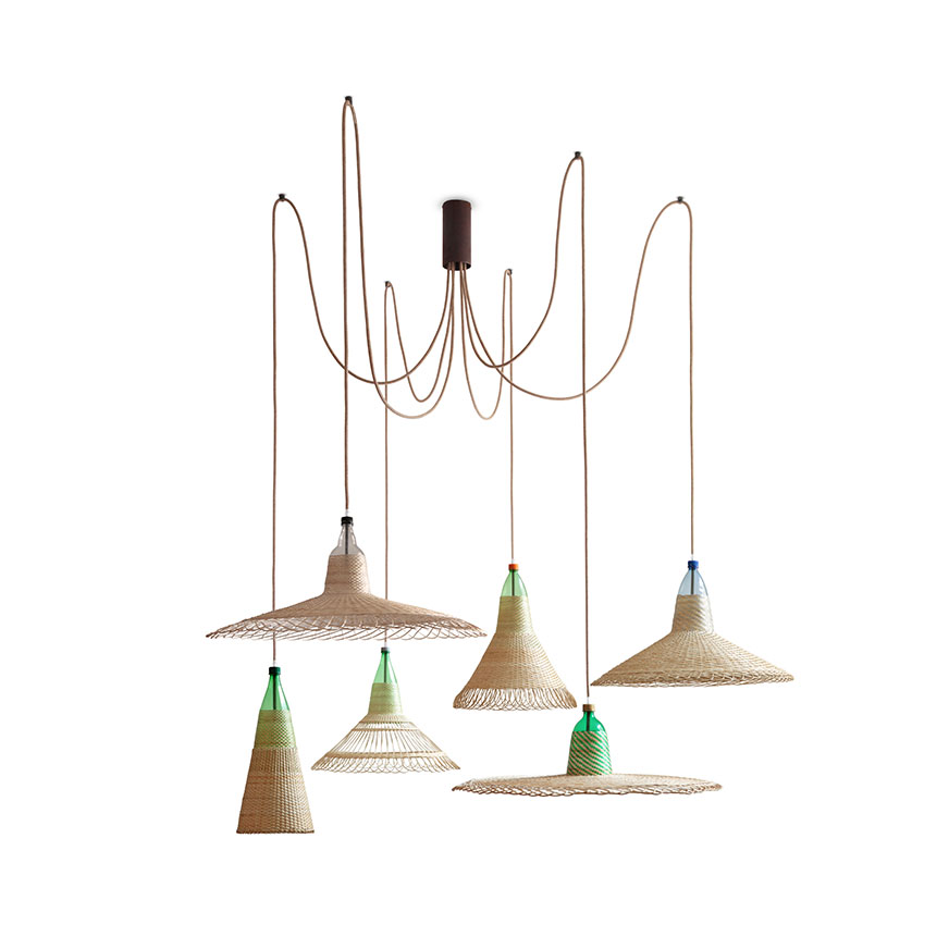 A collaboration between Madrid-based designer Álvaro Catalán de Ocón and a group of artisans in the Colombian Amazon and beyond, the PET Lamp collection is a vibrant, soulful project that transforms trash into treasure. Each PET Lamp is one of a kind. The shades are created by hand from discarded plastic bottles that are cut into strips and interwoven with dyed and undyed palm tree fibers by artisans in South America.
