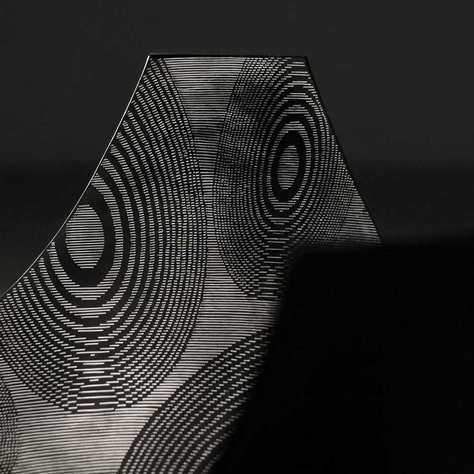 Drop table, from the Bidri collection, whose engraved design represents a splash filled with waves. These attributes evoke the calm surface of the waters when a drop of rain surprises the expanse of the sea