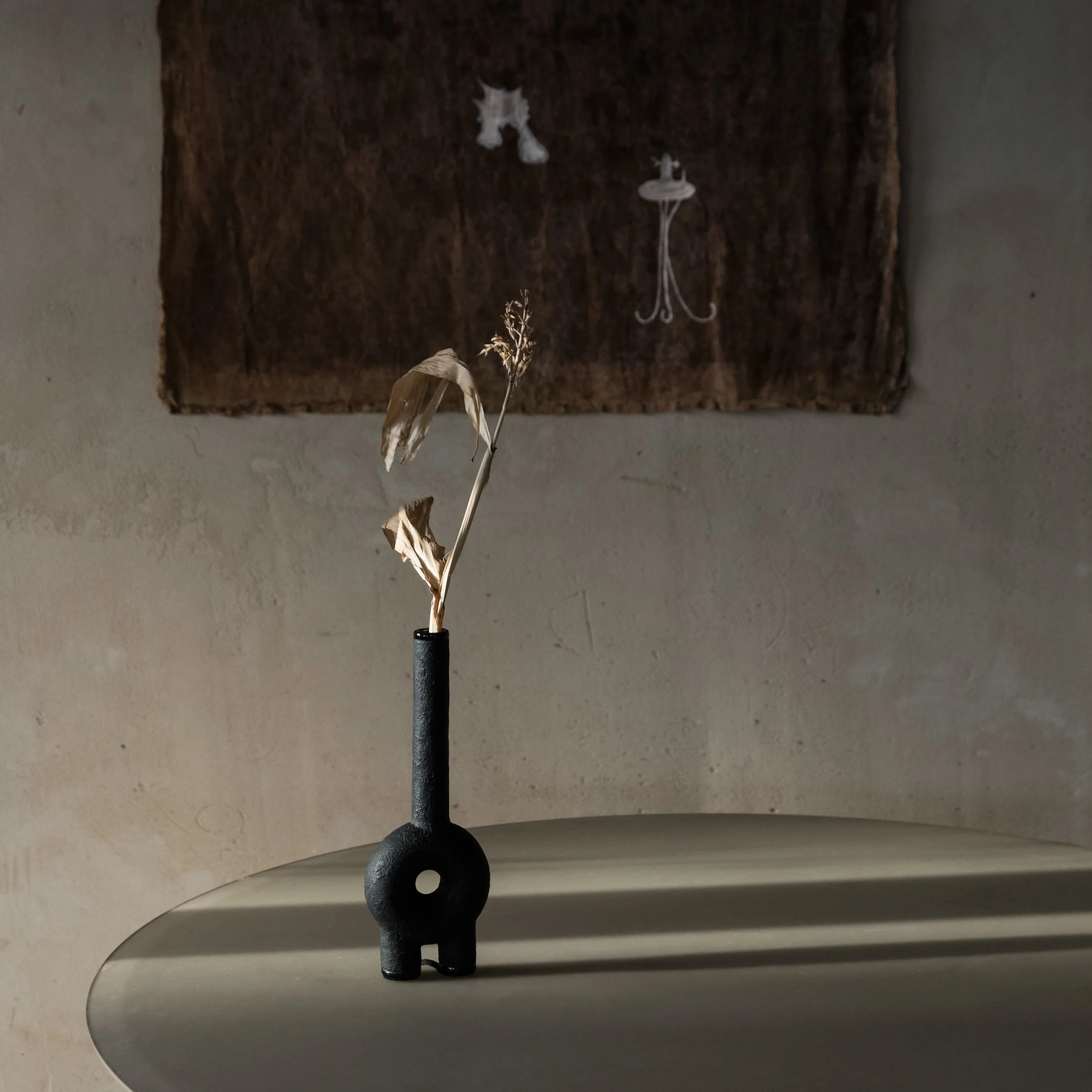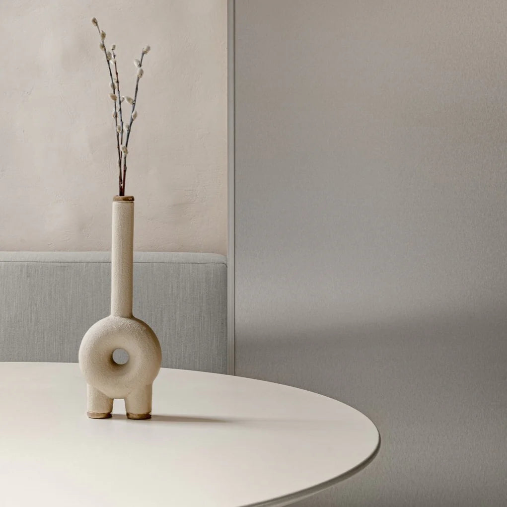 The KUMANEC Long Neck Vase is a contemporary interpretation of the ancient Ukrainian ritual vessel, elongated in form to carry a timeless breath through space. Its tall, slender neck rises gracefully from a rounded, grounded base—symbolizing the connection between earth and sky, body and spirit.