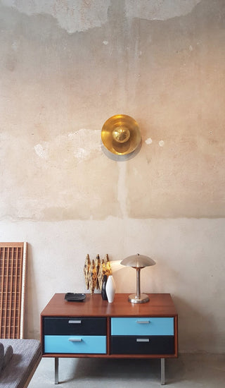 These are perfect shapes that bring out the beauty of the brass. Captured in a minimalist elegant form. The shape is the result of a long process of searching for the perfect proportions. The lamp gives a soft decorative light.