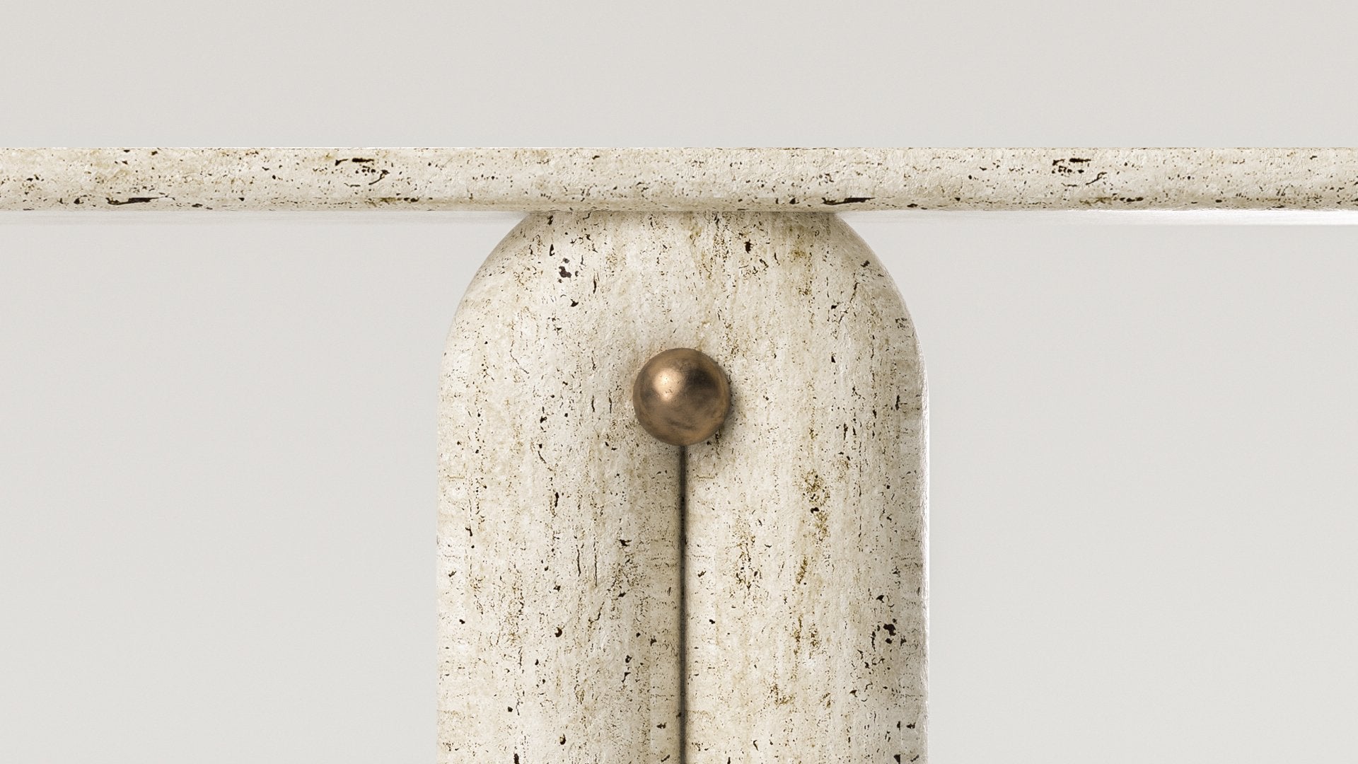 Imposing console in Travertine and textured Brass on the top will enchant your visitors in your entrance or living room.