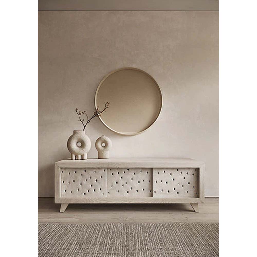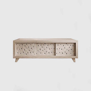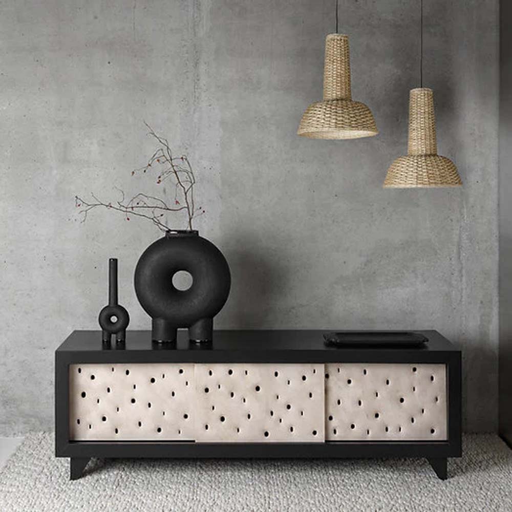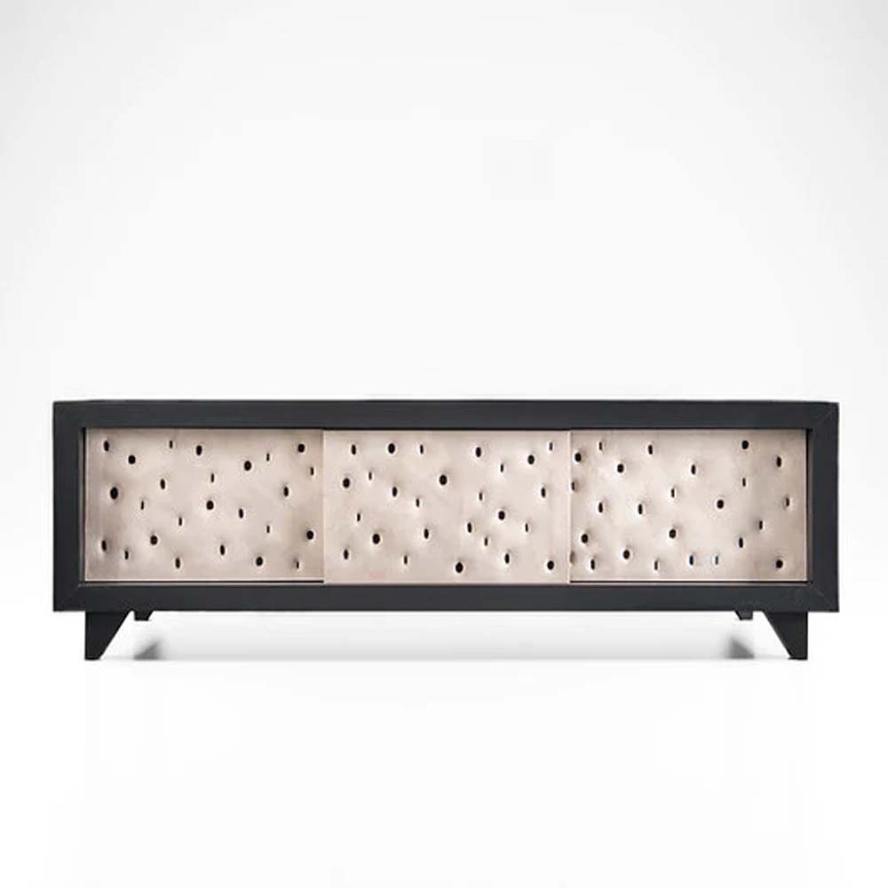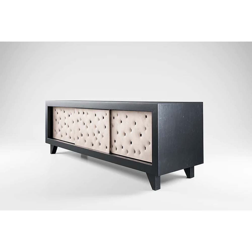Pechyvo means biscuit in Ukrainian. The clay facade of PECHYVO cabinet vibrates with the energy and warmth of healing clay, one of the main handicraft materials for Ukrainians. Features signature holes and an ash wood framework.