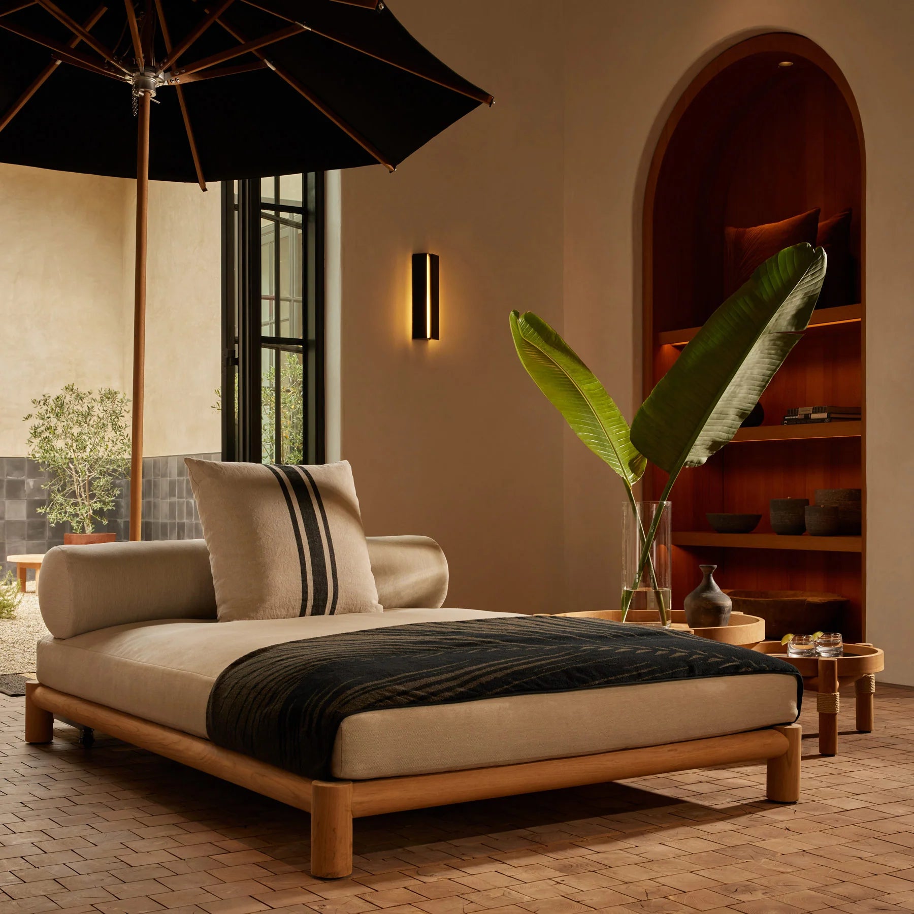 With its clean lines, low profile, and gently rounded legs, the Punta Mita daybed embodies understated elegance and natural refinement. Crafted from premium-grade solid teak, it stands out for its generous proportions and the exceptional quality of its materials. The cushions, upholstered in our high-performance Pacific Melange fabric, offer both comfort and sophistication. Whether showcased as a statement piece or arranged in a series by the pool, it invites effortless relaxation in a distinctly chic spirit.