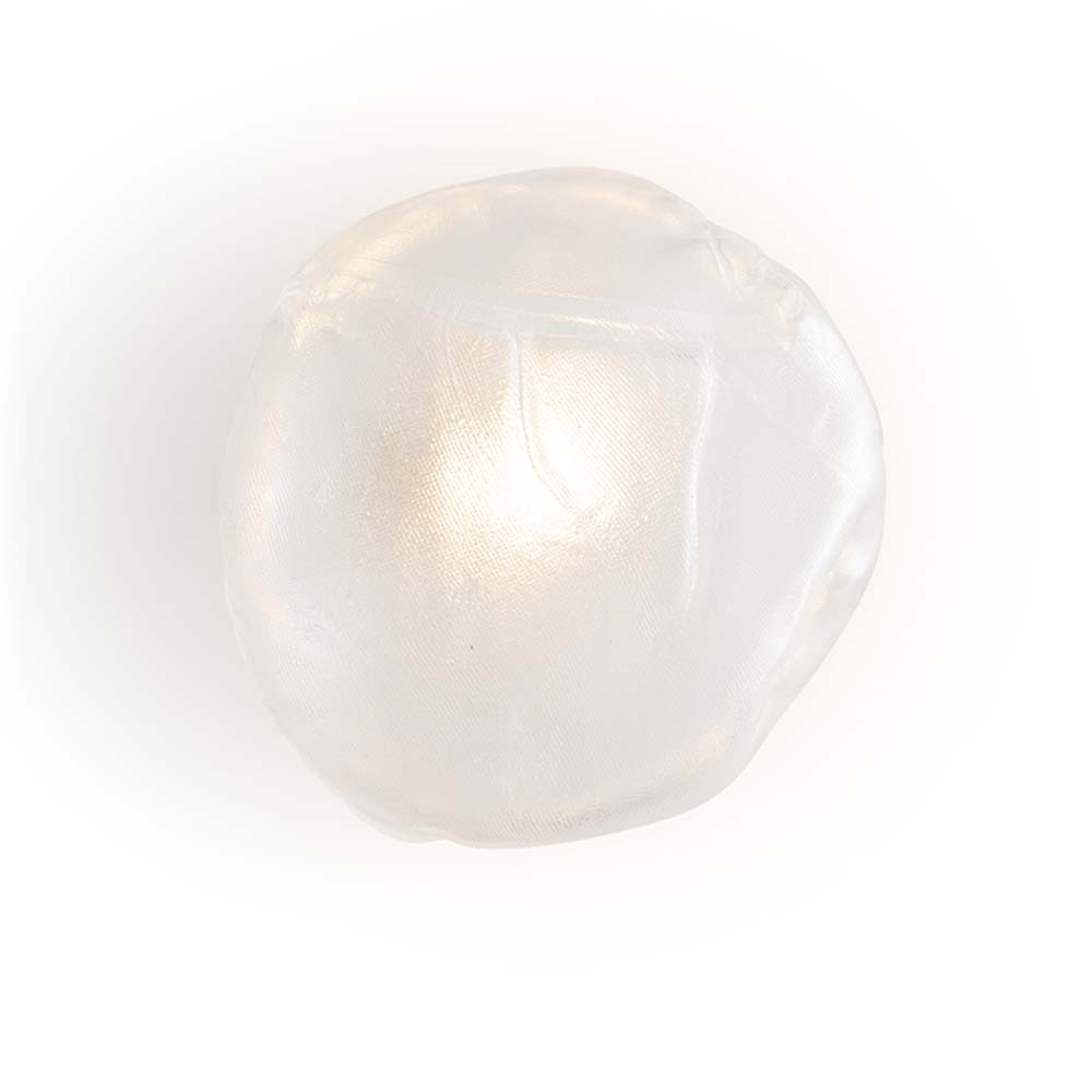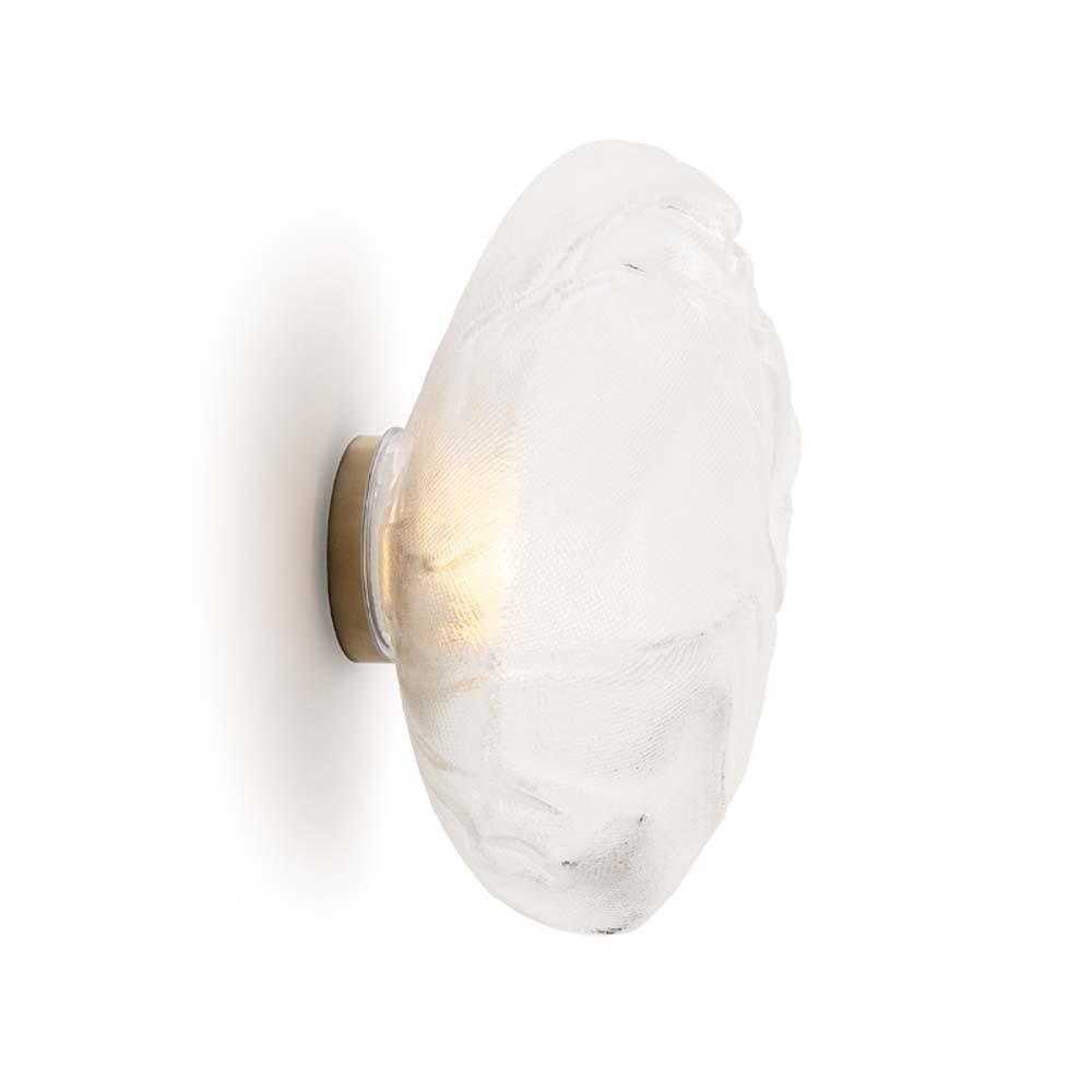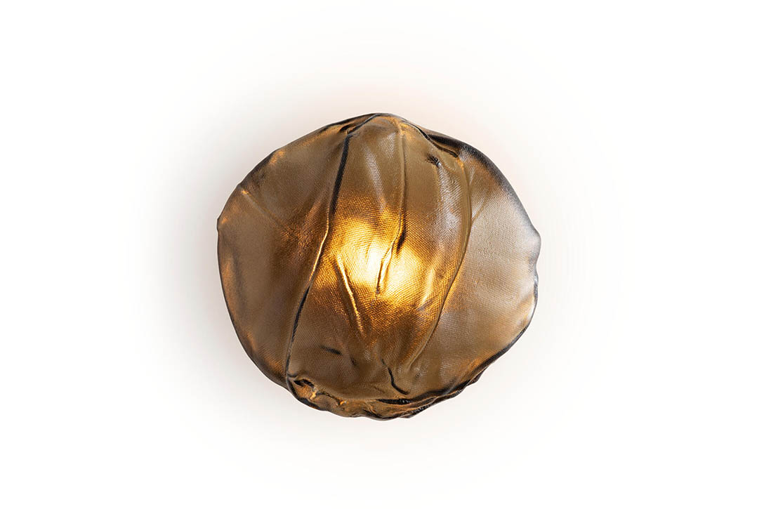 73 results from blowing liquid glass into a folded and highly heat-resistant ceramic fabric vessel. The resulting shape has a formal and textural expression intuitively associated with fabric, which becomes permanent and rigid as it cools.