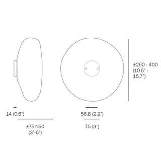 Dimensions : lamp 260-400 mm (10.5 - 15.7'')