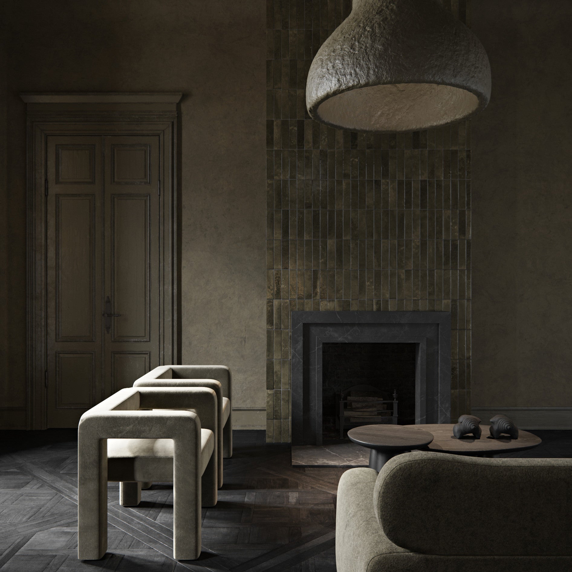 The new series of light sculptures named Ambra combines volumes of ancient stones and aluminium. Centerpiece is the Mexican “Toba volcánica” stone that consists of minerals, glass and volcanic debris ejected one million years ago during severe eruptions. Fragments in the geometrical surfaces are testament to these explosions and movement.