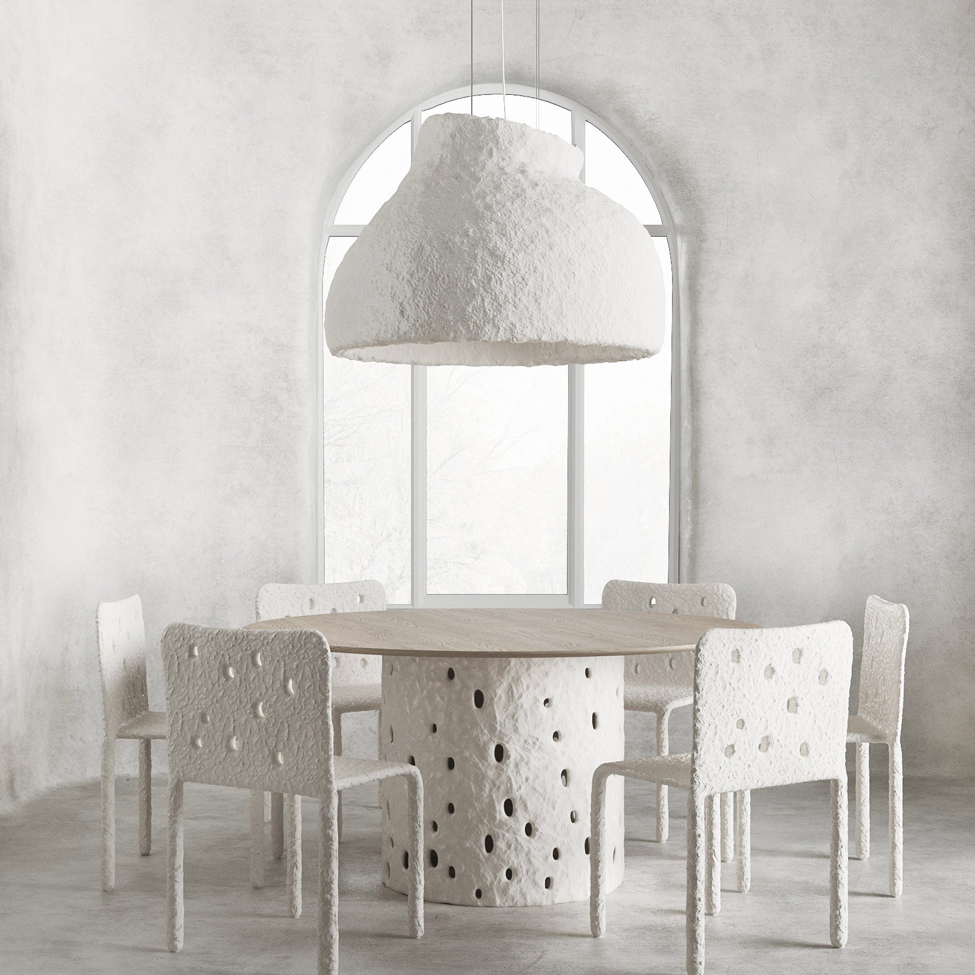 Materials : Sustainable Ztista (a blend of clay, wooden chips, recycled paper, and other natural components covered with biopolymer), glass lamp plafond.