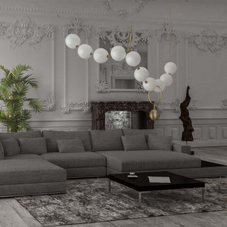 Coco, by Larose Guyon, evokes flexibility, elegance and wonder at the encounter of jewelry and light. Like a pearl necklace, the 10 hand-blown globes of this luminaire unfold in several configurations to adapt to the context in which it will be admired.