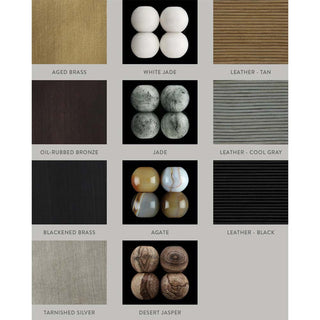 Finishes : Aged brass (waxed), Oil-rubbed bronze (waxed), Blackened brass (axed), Tarnished silver (lacquered) Add 30% for tarnished silver.
