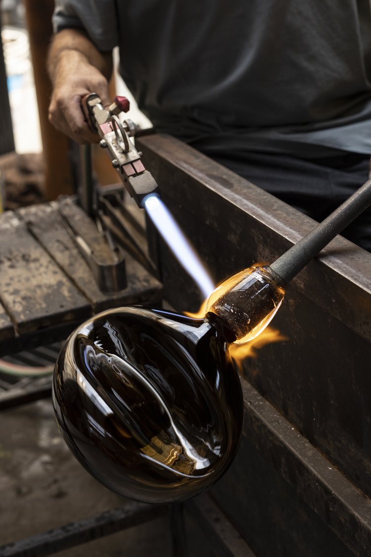The delicacy and lightness of blown glass harmoniously blend with marble, evoking sacred reminiscences. Each lamp is a unique piece, telling unexpected stories through the unpredictable results of the ever-evolving free-blown glass technique. Firmly set, TALLA illuminates our everyday living spaces with warmth and conviviality.