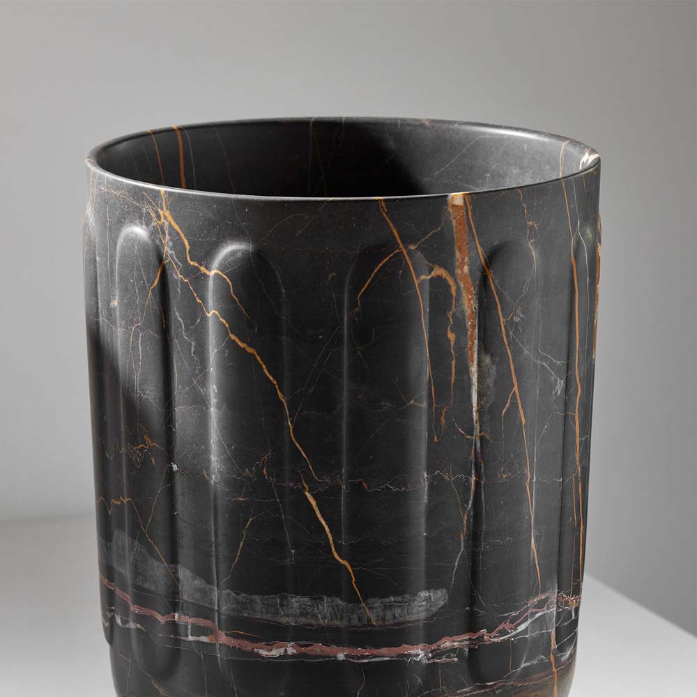 Left as it is or filled with fresh or dry flower bouquet, this vase reveals a high end poetry and softness. Its chic and pure design with feminine curves makes this vase a life-time piece. You will find a large choice of marbles or travertine to better suit your tastes and decoration.