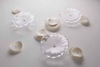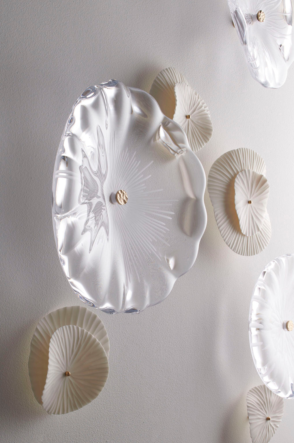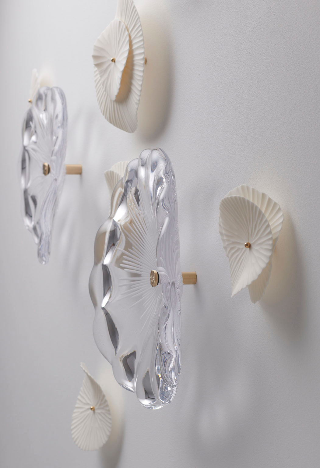 Thus, light, filtered through ceramic and glass, reveals moving shards, like an underwater echo vibrant with grace and serenity.
